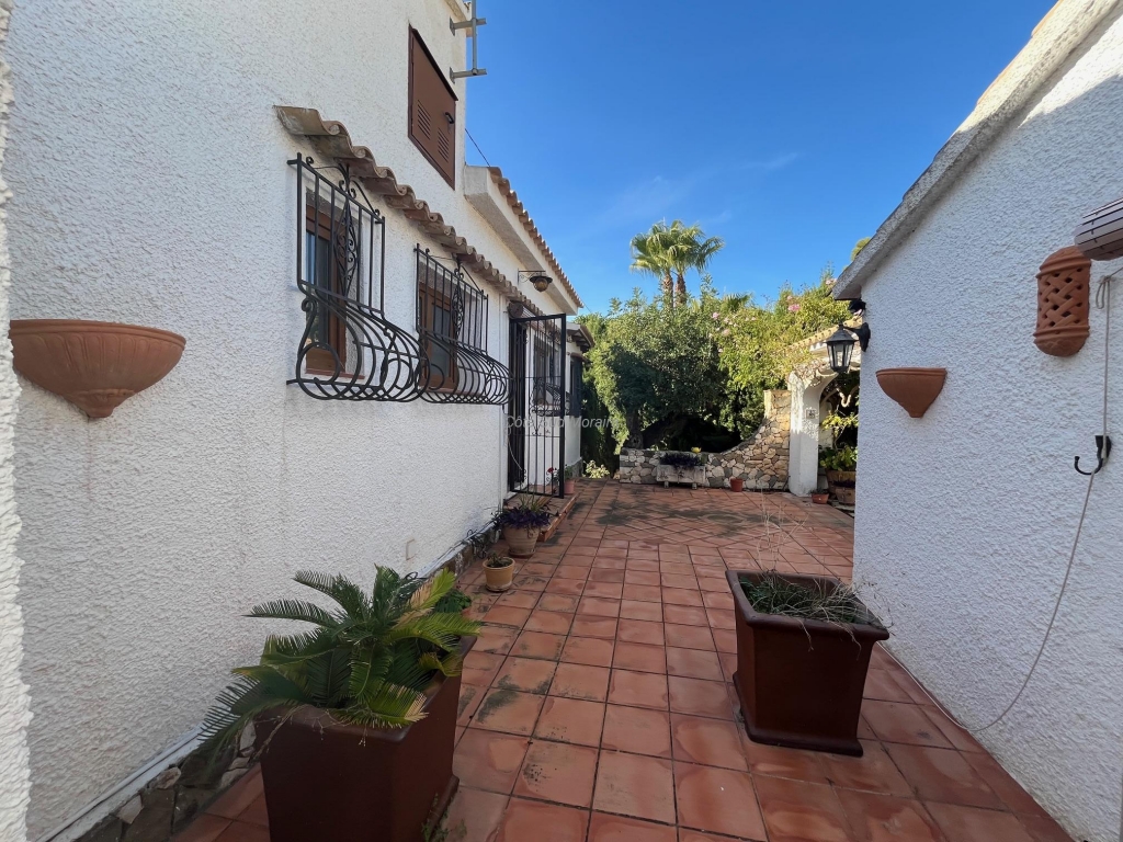 Geräumige Villa im spanischen Stil mit großem Potenzial, die modernisiert werden muss. Zugang von zwei Straßen zu diesem großen Grundstück von 1788 m² mit einer traditionellen Villa, die Anfang der 70er Jahre erbaut wurde. Das Haus ist nach Süden ausgerichtet und von schönen Gärten mit mehreren Obstbäumen, Kiefern und Olivenbäumen umgeben. Sitzecken vor und hinter der Villa. Einige Stufen führen zur geräumigen, typisch spanischen überdachten Terrasse mit Zugang zum großzügigen Wohnzimmer mit einem zentral gelegenen Holzofen. Separates Esszimmer mit sichtbaren Holzbalken. Eine große, kürzlich modernisierte separate Küche, zwei geräumige Doppelzimmer und ein Einzelzimmer, zwei renovierte Badezimmer. Eine Garage im Untergeschoss und eine riesige Werkstatt. Separater Waschraum und Vorratsraum, der in ein Gästezimmer umgewandelt werden kann. Viel Platz, um die Villa zu vergrößern und einen Swimmingpool zu bauen. Elektrische Heizkörper und doppelt verglaste Fenster. In der Nähe des Strandes von Baladrar. Eine einzigartige Gelegenheit, ein großes Grundstück in Strandnähe zu erwerben.